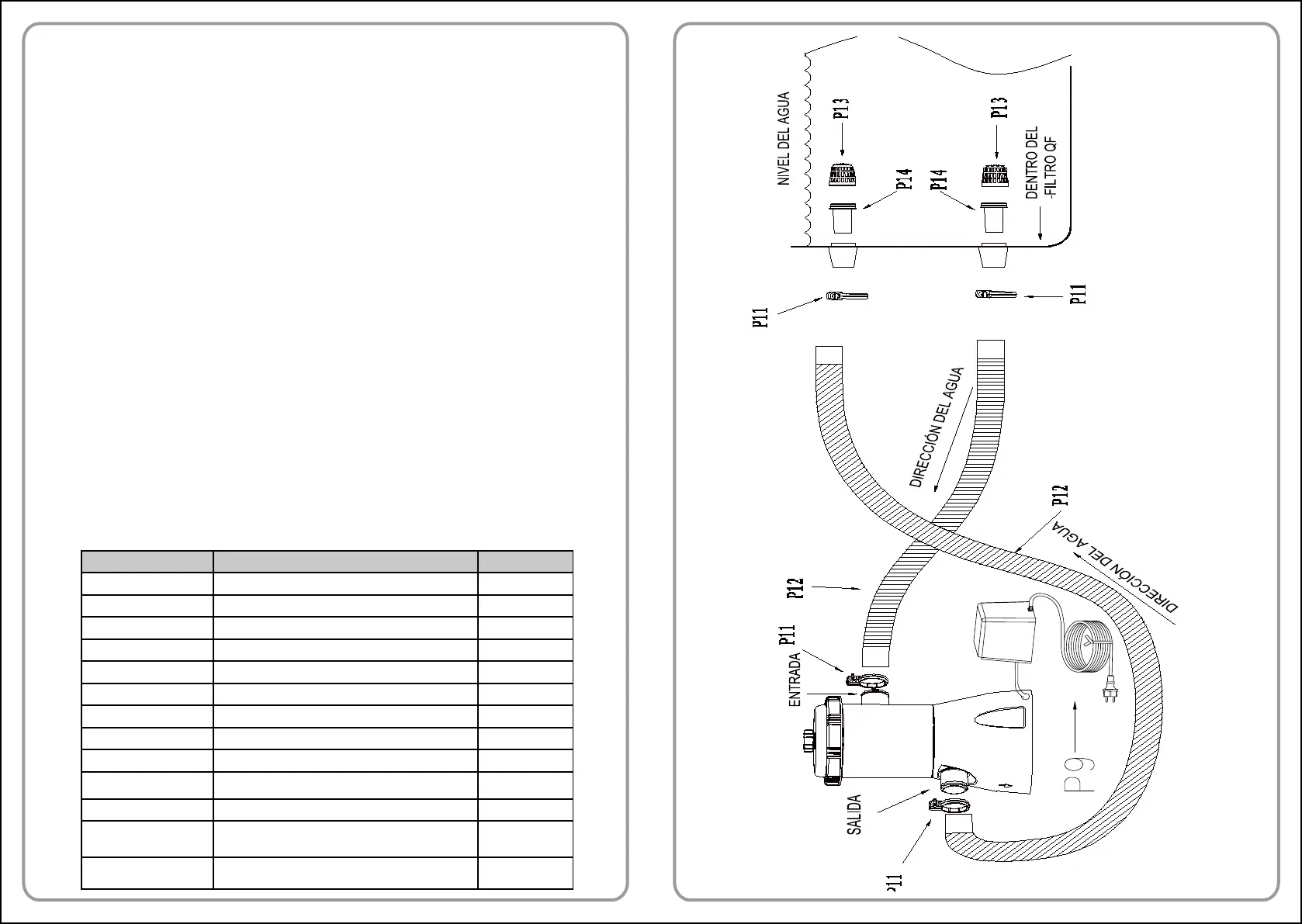 9. Una la manguera de conexión (P12) a la toma de entrada de la bomba con ltro (parte