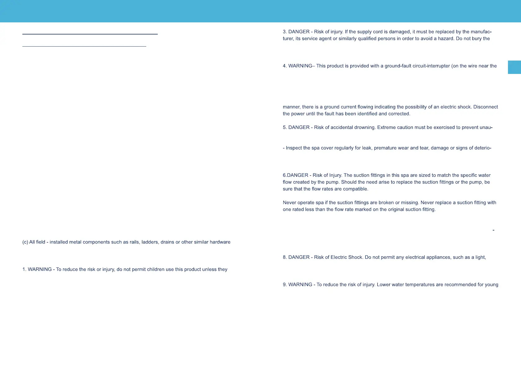 thorized access by children. To avoid accidents, ensure that children cannot use this spa unless