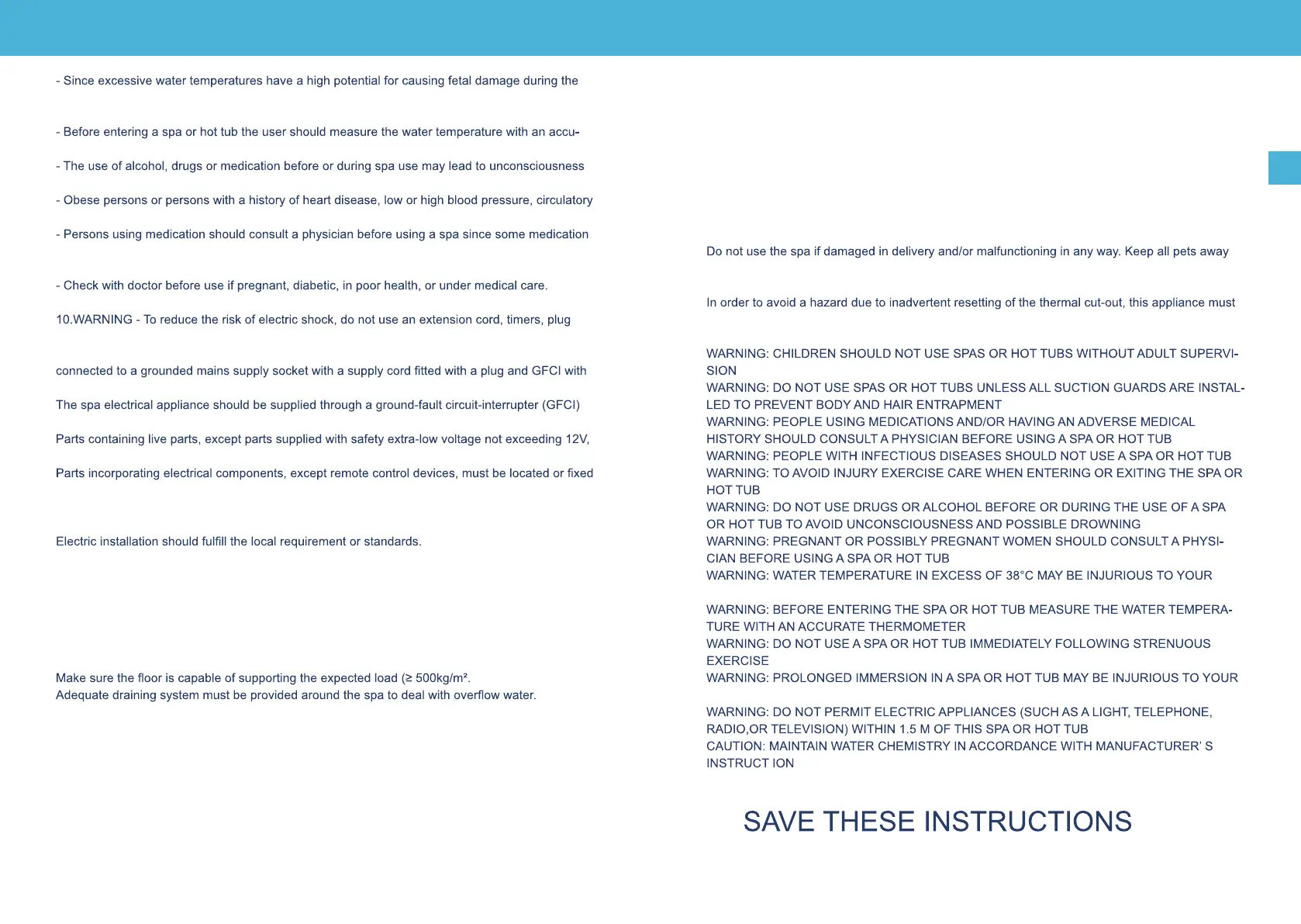 system problem, or diabetes should consult a physician before using a spa.