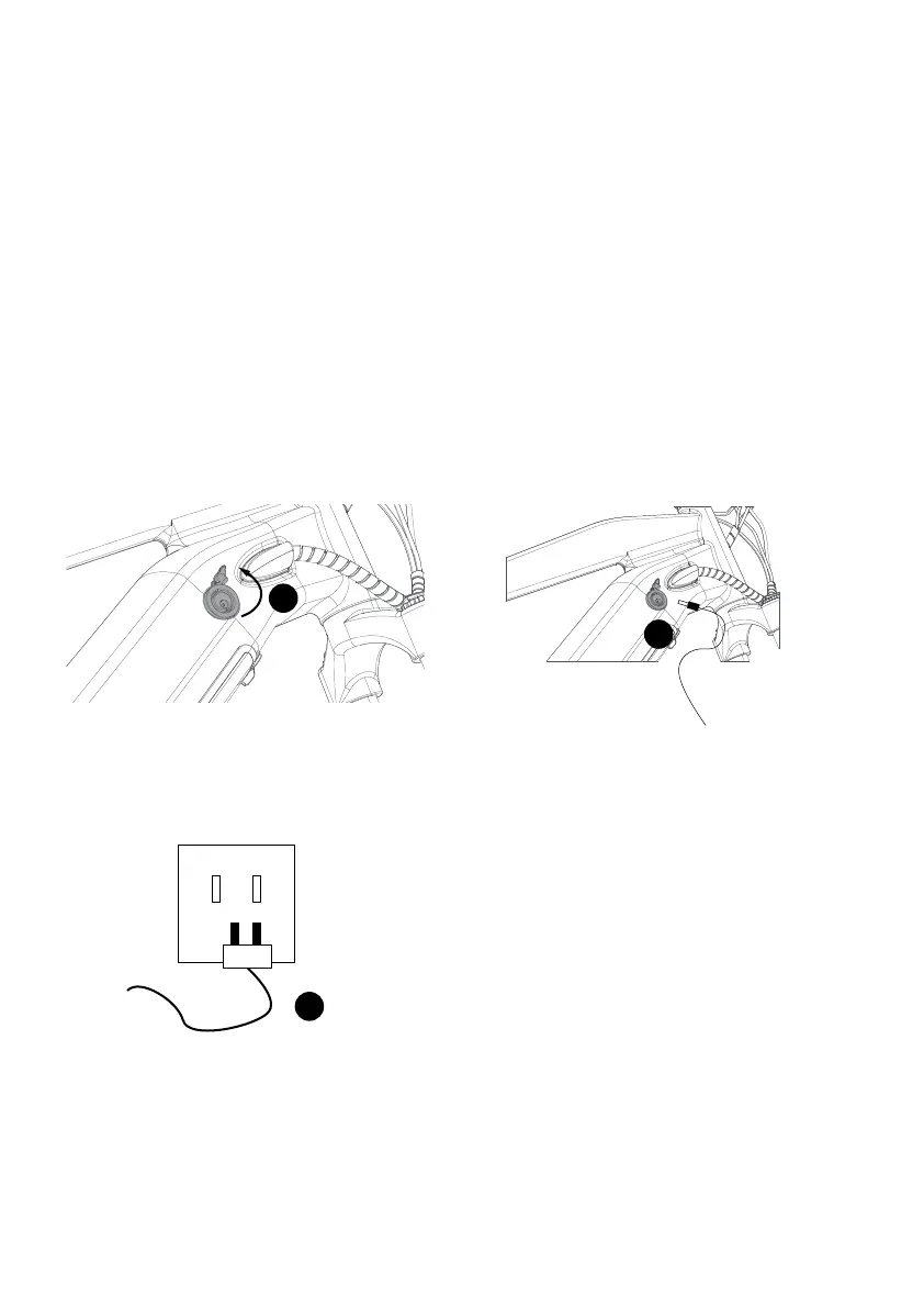 3. Plug the charger into the battery’ s charging port: With the battery on or o the bike, place the charger
