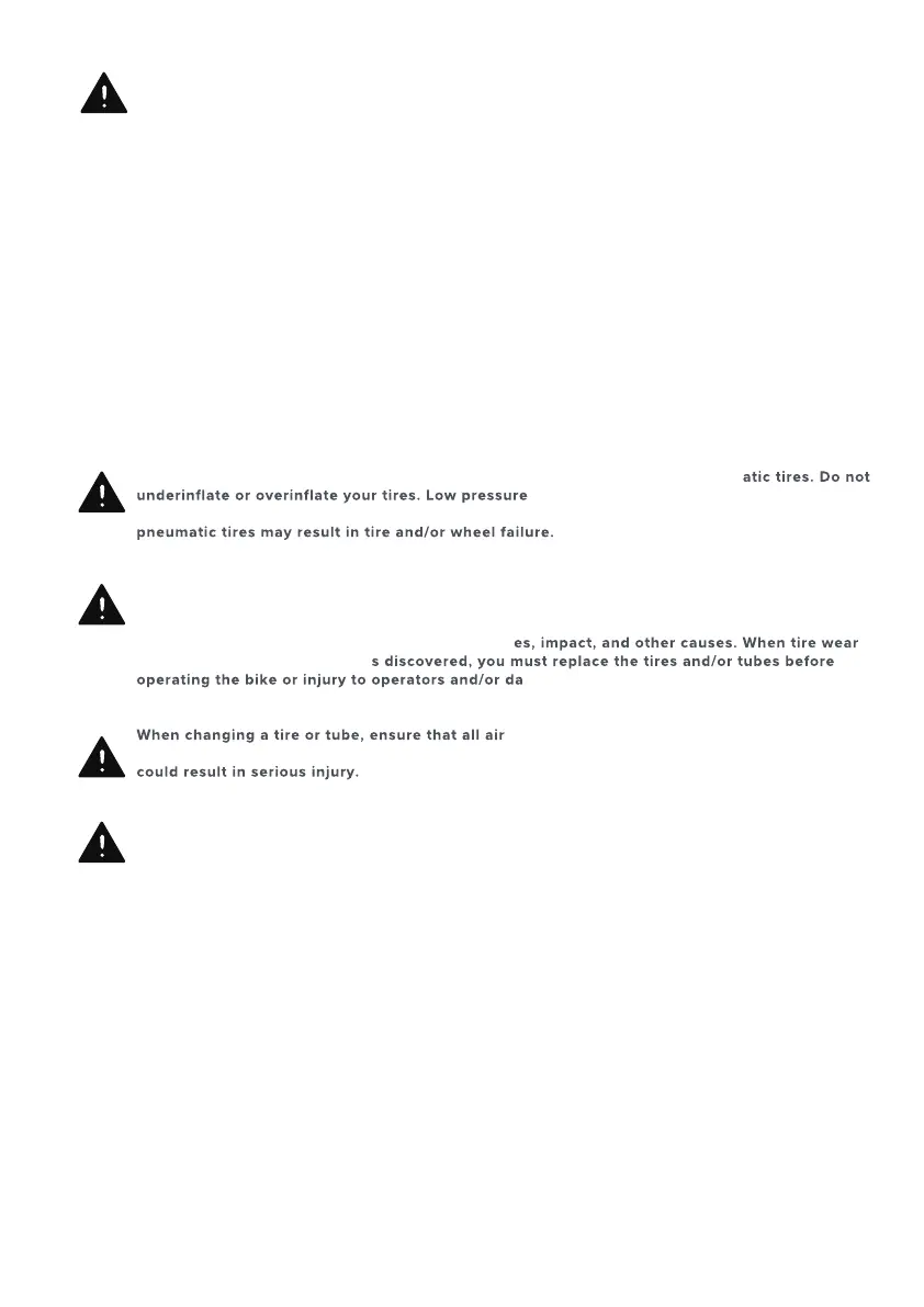 overinflated tires may burst. Failure to always maintain the air pressure rating indicated on