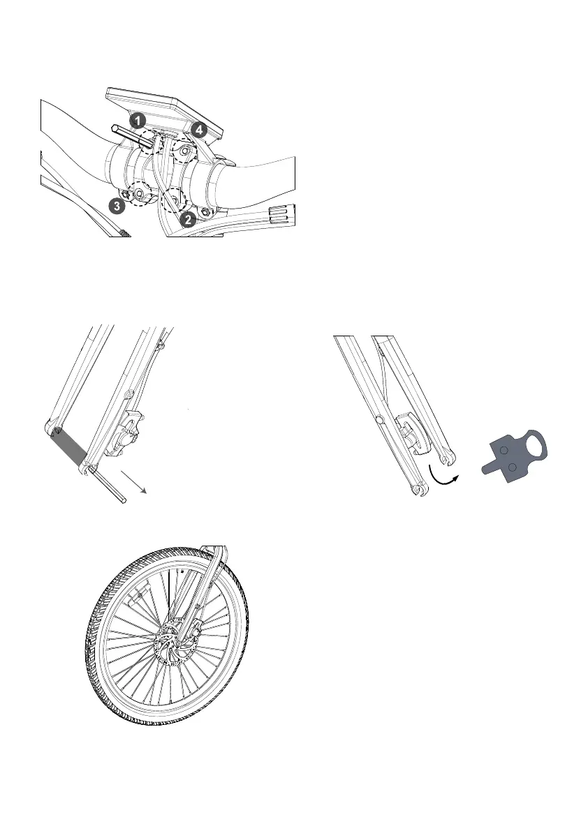 C.Carefully install the front wheel and make sure the brake rotor sits in between the braking pads in the