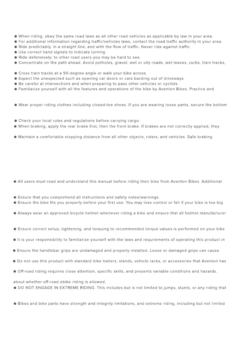 Aventon and should be closely reviewed. Failure to review these notes can lead to serious injury or
