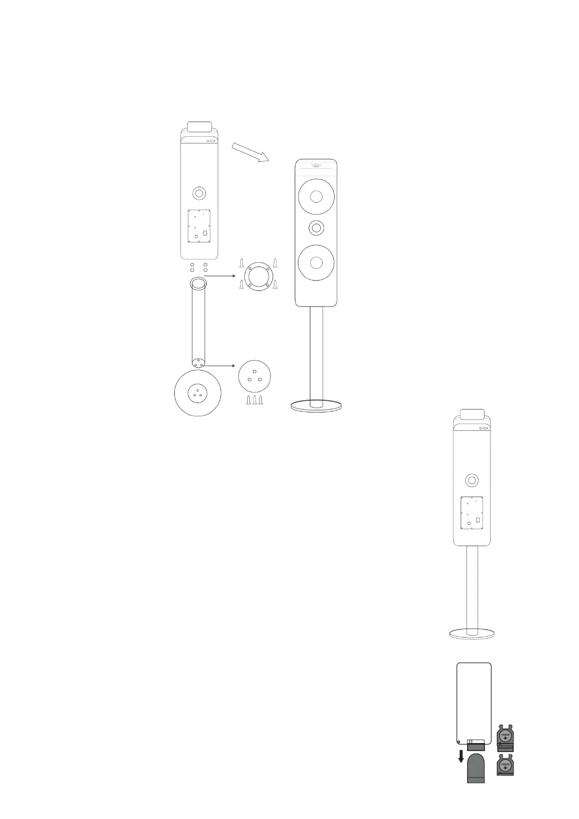 tuboeilcorpoconuncacciavite(nonincluso)comemostral'immagine. Appoggiare la torre sul pavimento; l'altoparlante è pronto