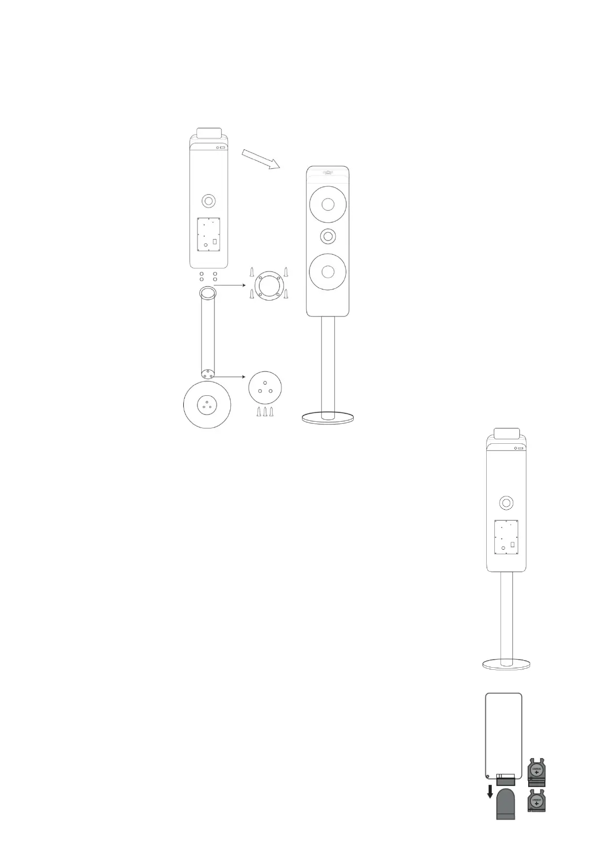 poniższym rysunkiem. Następnie ustaw kolumnę pionowo na podłodze; w tej chwili kolumna głośnikowa jest już gotowa do użycia.