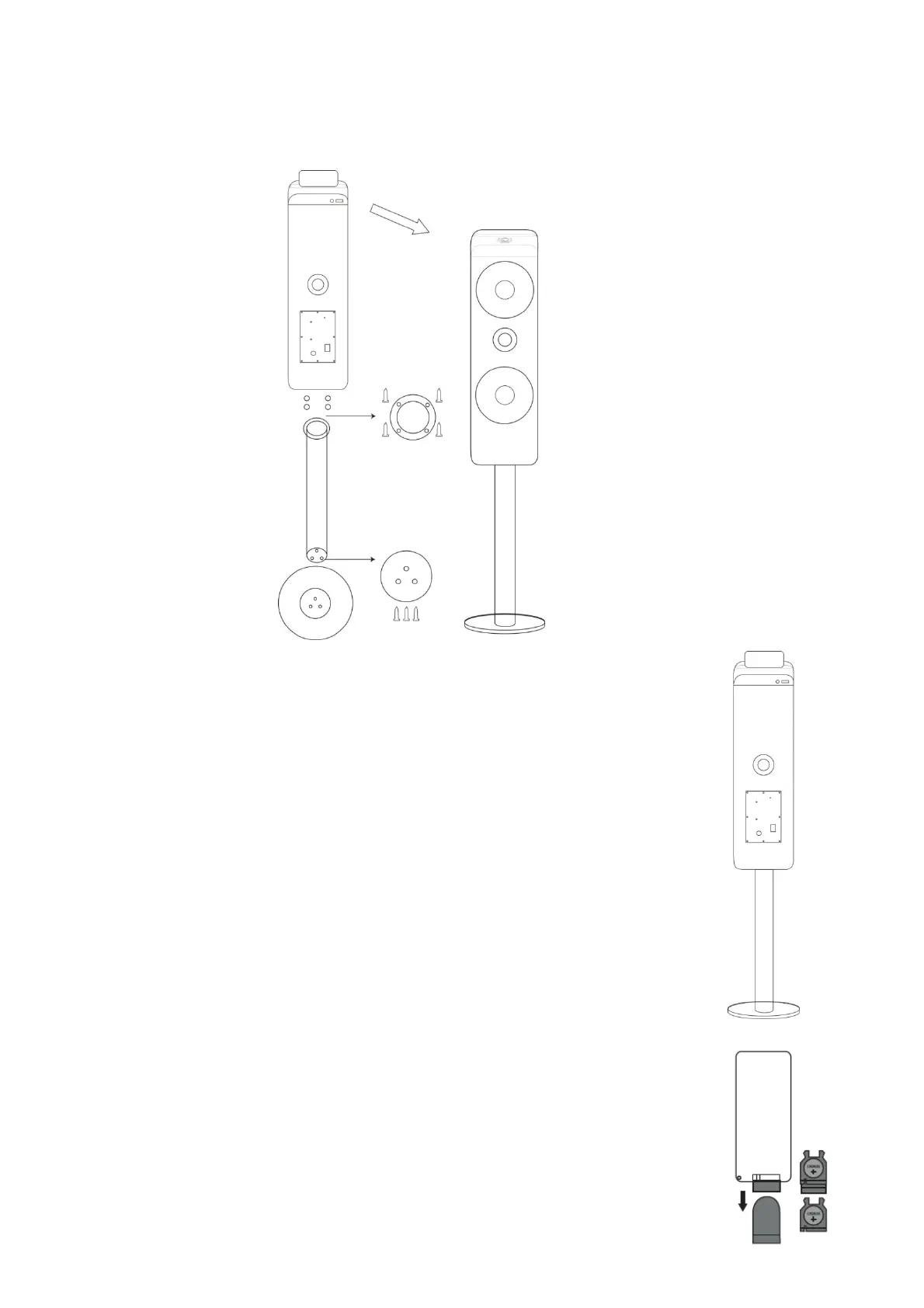 Aparafuse a base, o tubo e o corpo com uma chave de fenda (não incluída), como ilustrado na imagem. Coloque a torre no chão.