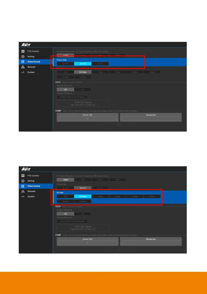 In live screen view, select “Video Format” > “Frame Rate” > “60FPS”, “30FPS”, or “15FPS”.