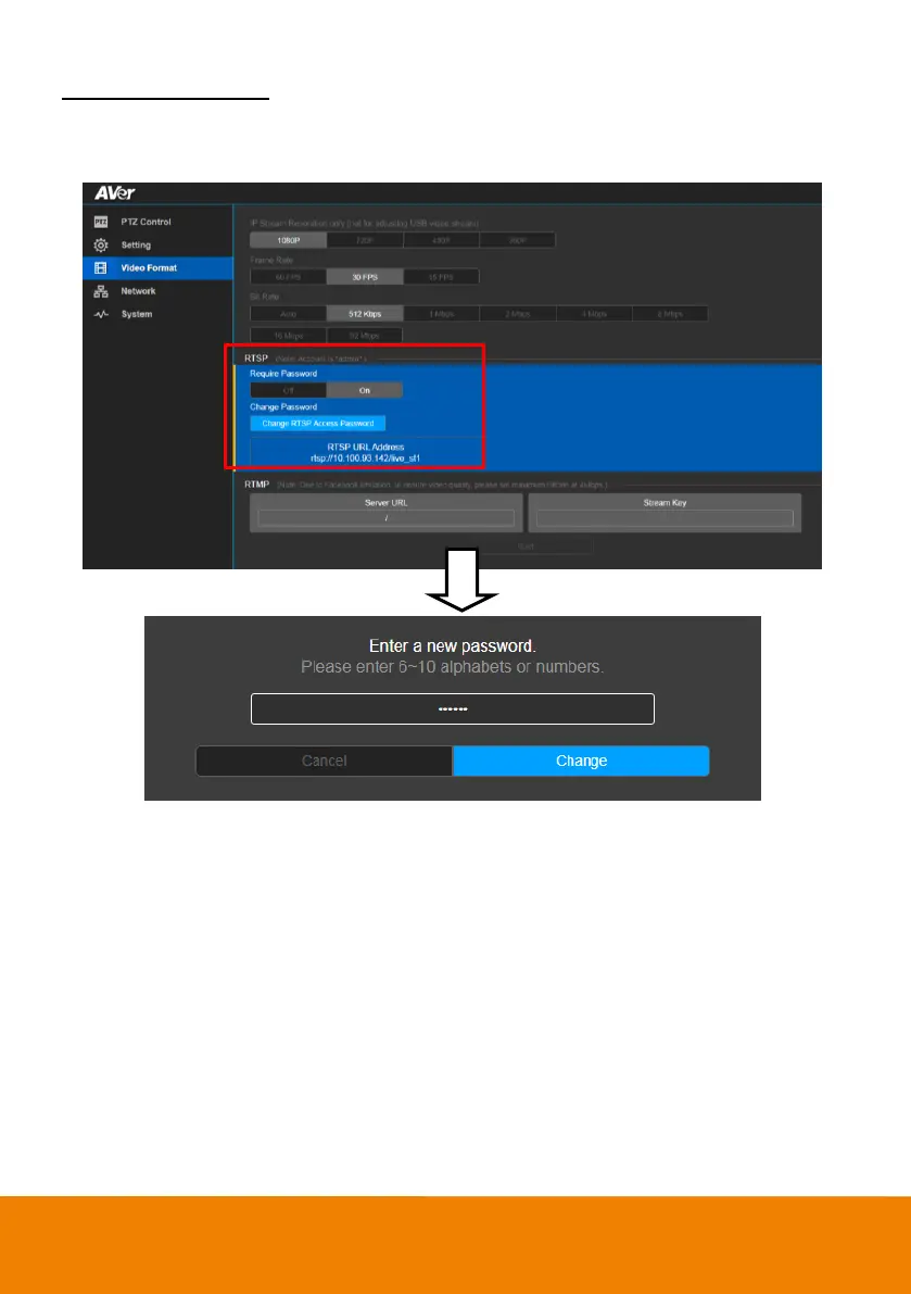 1. In live screen view, select Video Format > RTSP > “Change RTSP Access Password”.