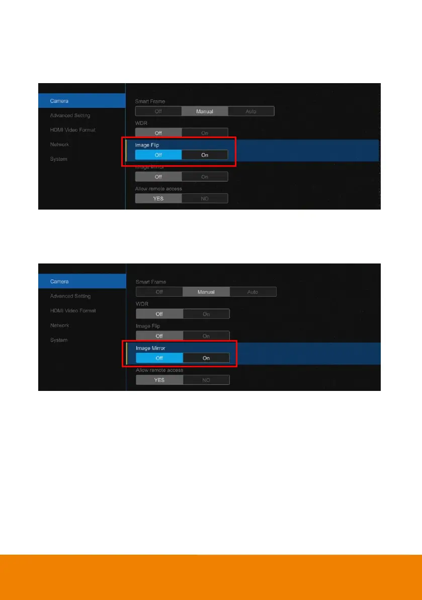 Select “Camera> Image Flip >“Off or On”.