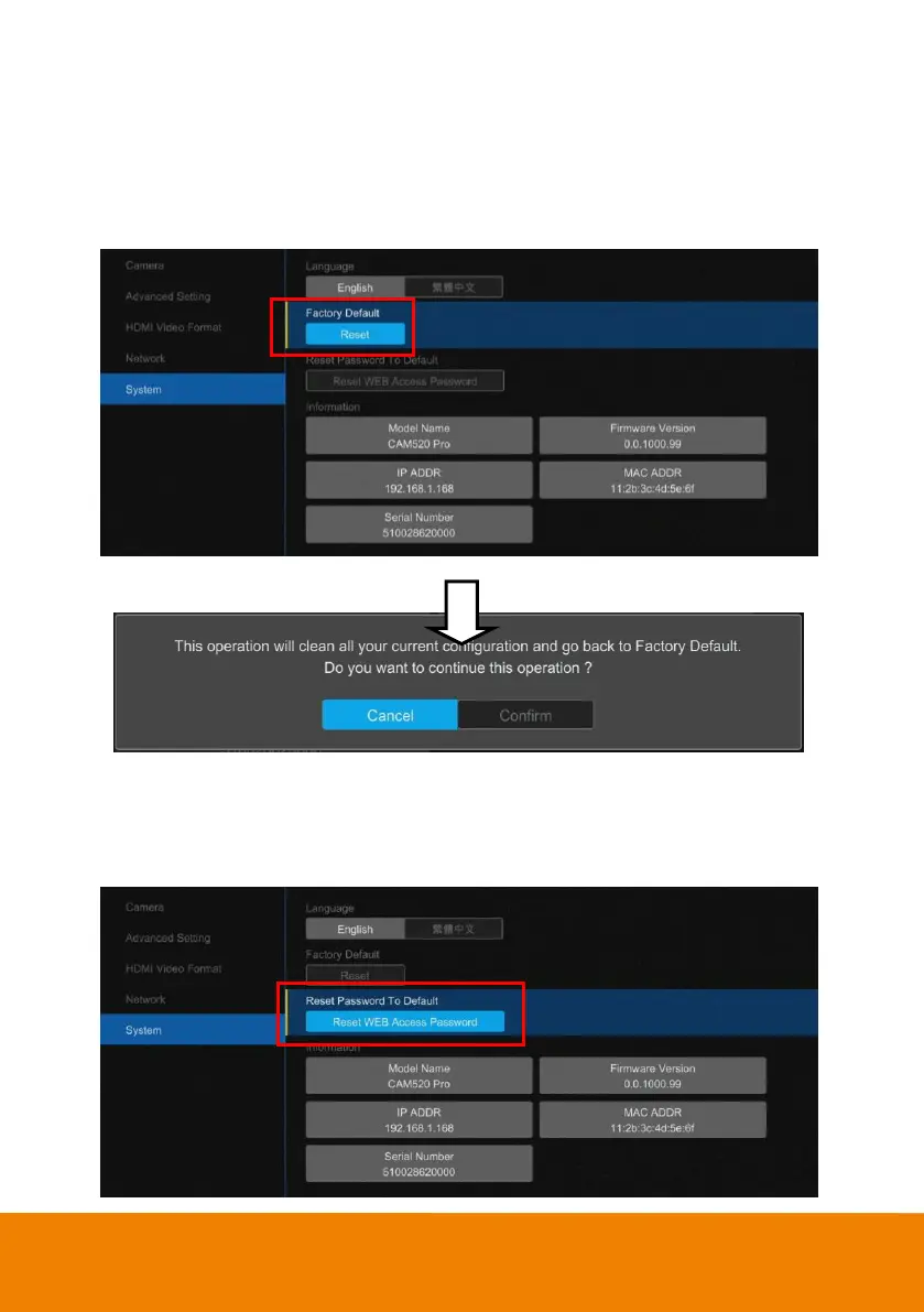 AVer CAM520 Pro - Reset, Reboot, and Password Management