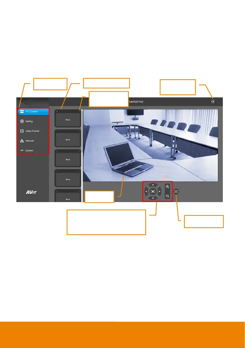 User can control the camera direction, zoom in/out, and preset selection.