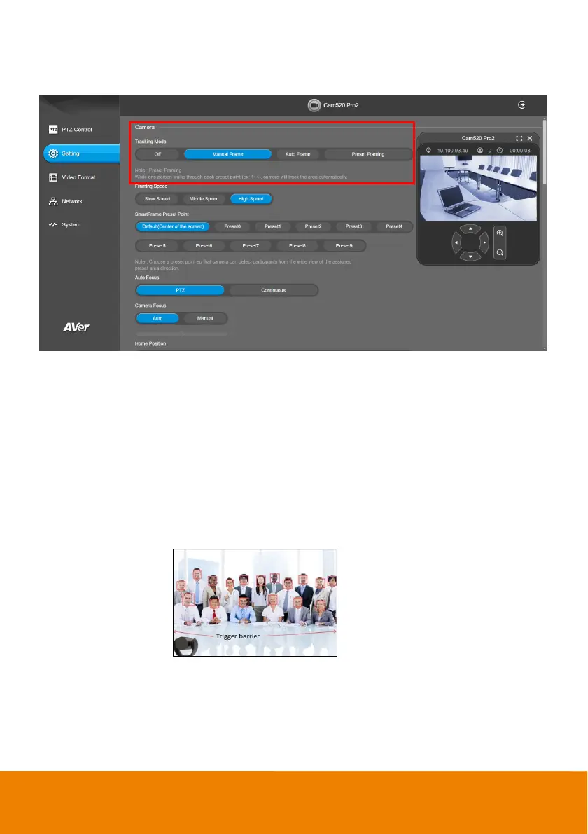 Manual Frame: User one-click SmartFrame button and camera will adjust view angle to fit all