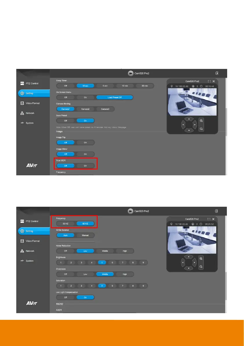 Select Setting > Image > True WDR > Off or On.