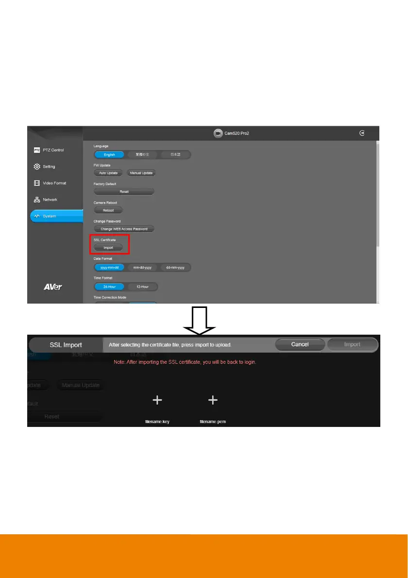 1. Select System > SSL Certificate > Import.