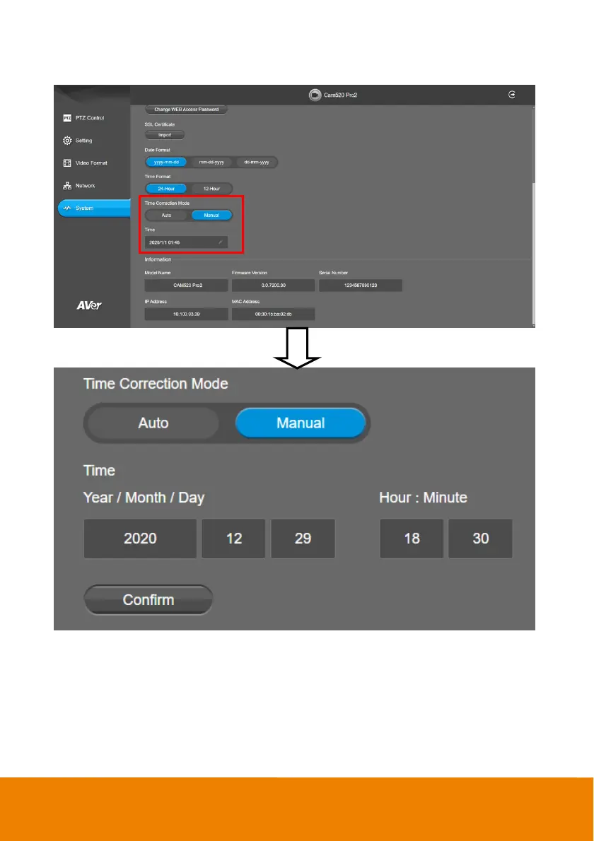 Manual: User can set up time manually. Click the pencil icon and enter the Year, Month, Day,