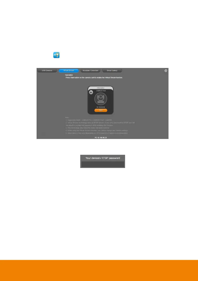 1. Launch PTZApp2 ( ) on a PC and click Virtual Stream.