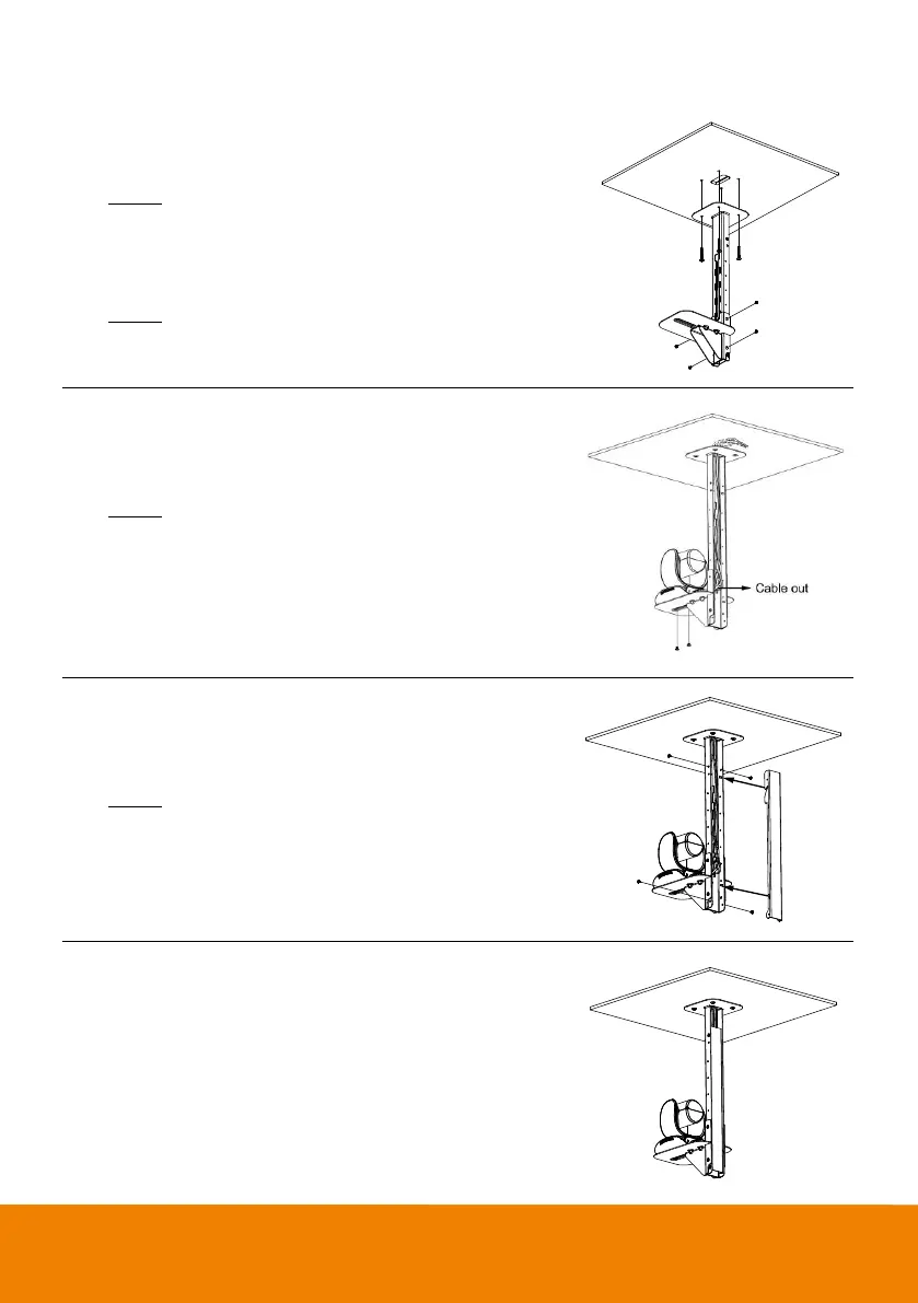 1. Drill the hole on the ceiling. Use screw to secure the mount