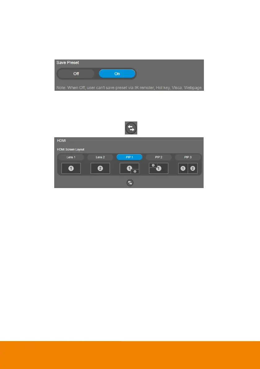 When off, user can’t save preset points via IR remote, Hot key, VISCA, and webpage.