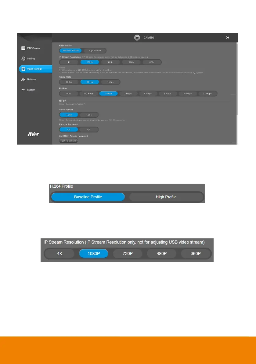 Select Video Format > IP Stream Resolution only > 4K, 1080P, 720P, 480P, or 360P.