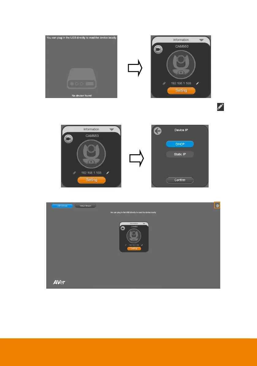 5. Set up IP address. The camera default IP address is 192.168.1.168. Click pencil icon ( ) to