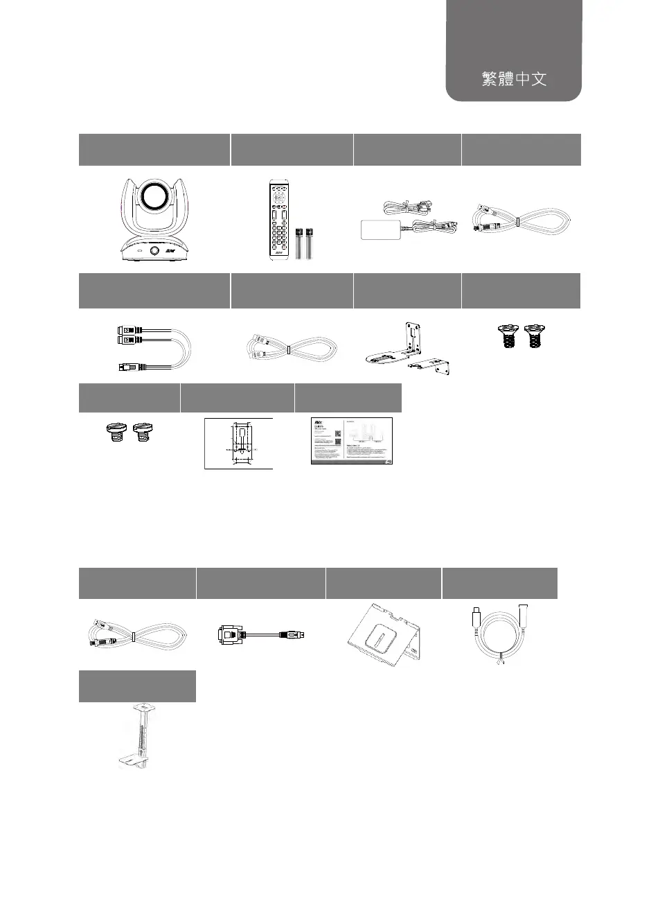 **請勿顛倒安裝本款雙鏡頭攝影機。如需吊頂式安裝,請向 AVer 洽購相關套件。