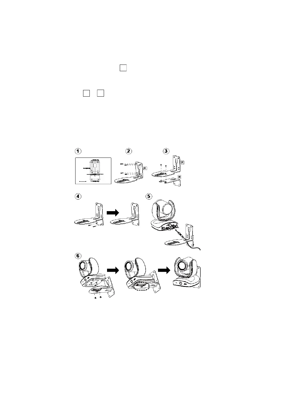 5. ケーブルを L-マウントブラケットの穴に通し、各ケーブルをカメラの端子に接続します。