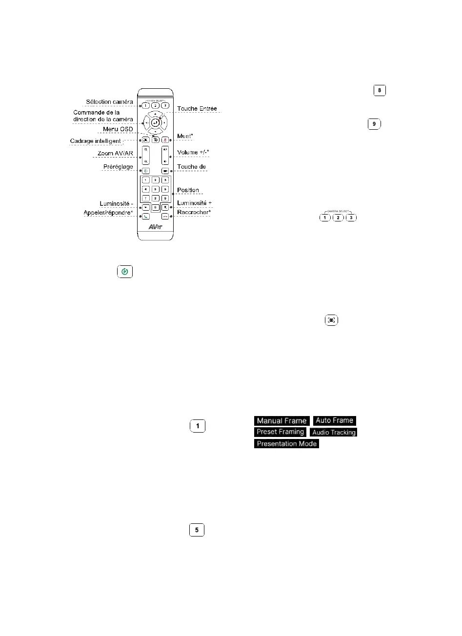 préréglés 1 - 9. Le préréglage 0 est pour la