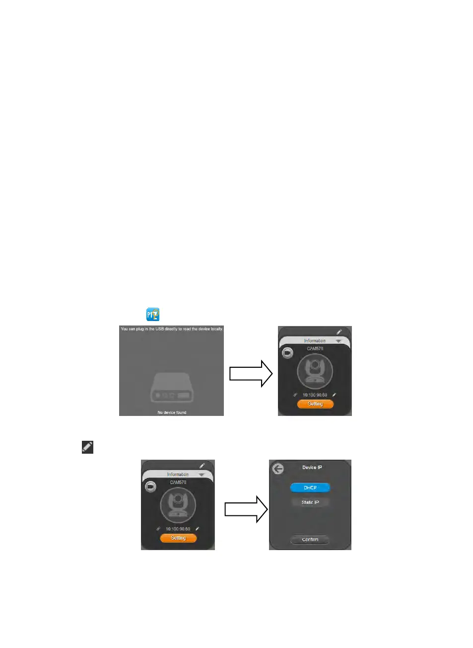 3. La dirección IP predeterminada de la cámara es 192.168.1.168. Haga clic en el icono del lápiz