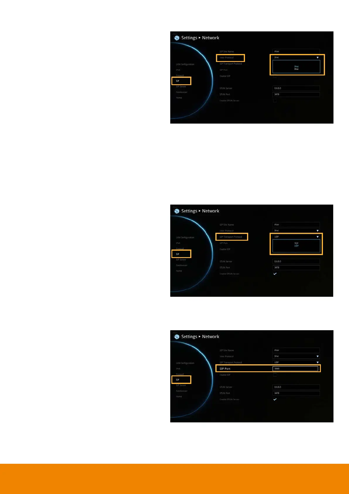 Select the SIP Transport Protocol type from the drop-down list for using. There are two types of