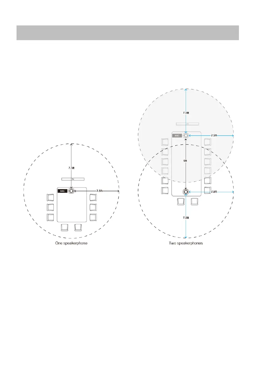 two or more speakerphones, the distance between the speakerphones must be 9 ft.