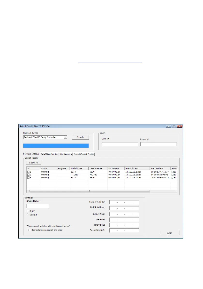 1. Download the IPCam Utility from http://www.aver.com/download-center .