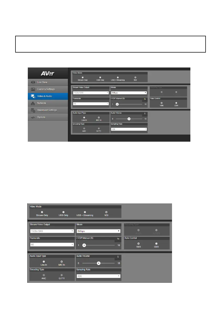 2. Stream Video Output, Framerate, Encoding type, and Sampling Rate sections are only for