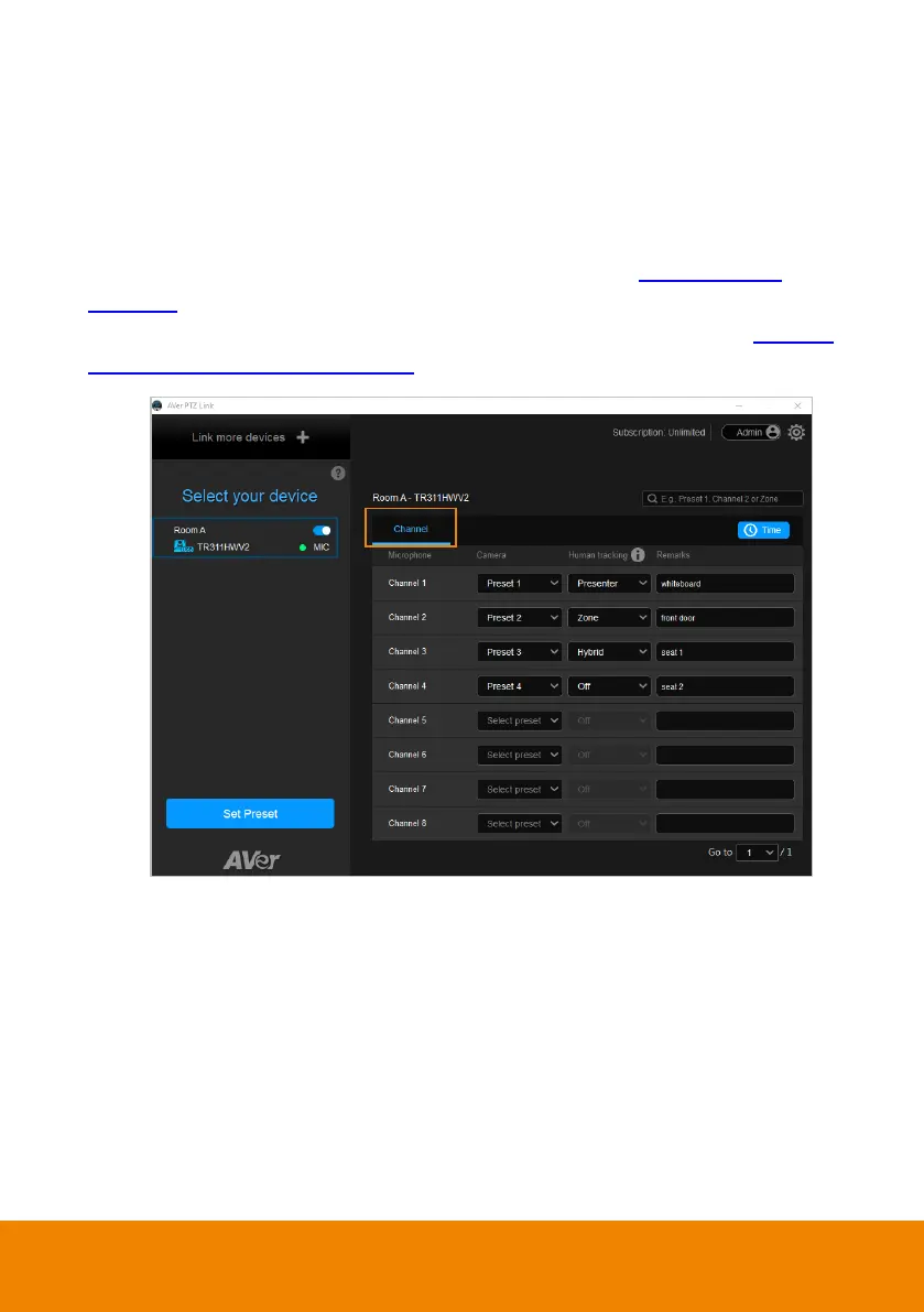 2. Pair up preset positions with microphone channels. Please refer to <Pair Up