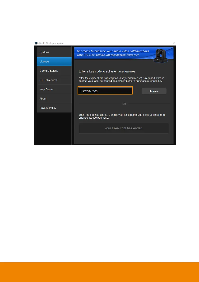 page. Enter the license key in the input box.