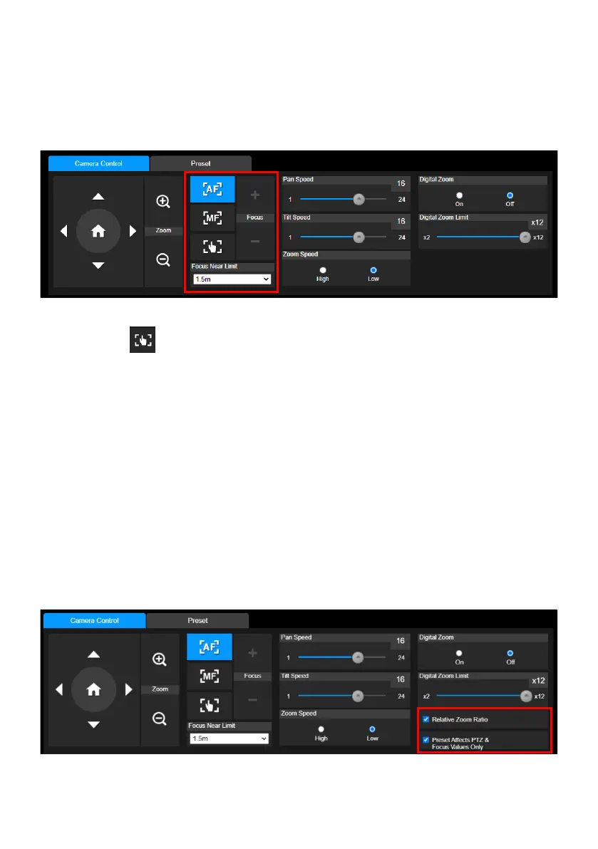 Pan/Tilt Slow: When this option is set to ON, the maximum speed of manual pan-tilt operation is