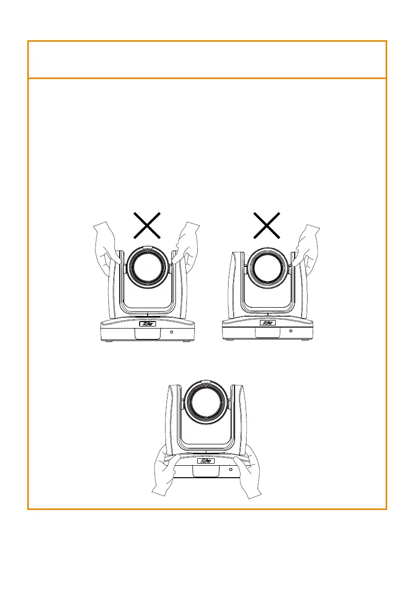 not grab the lens or lens holder to move the camera.