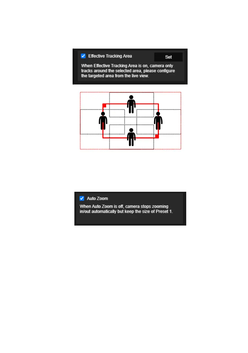 6. Effect Tracking Area: When Effective Tracking Area function is on, camera only tracks around