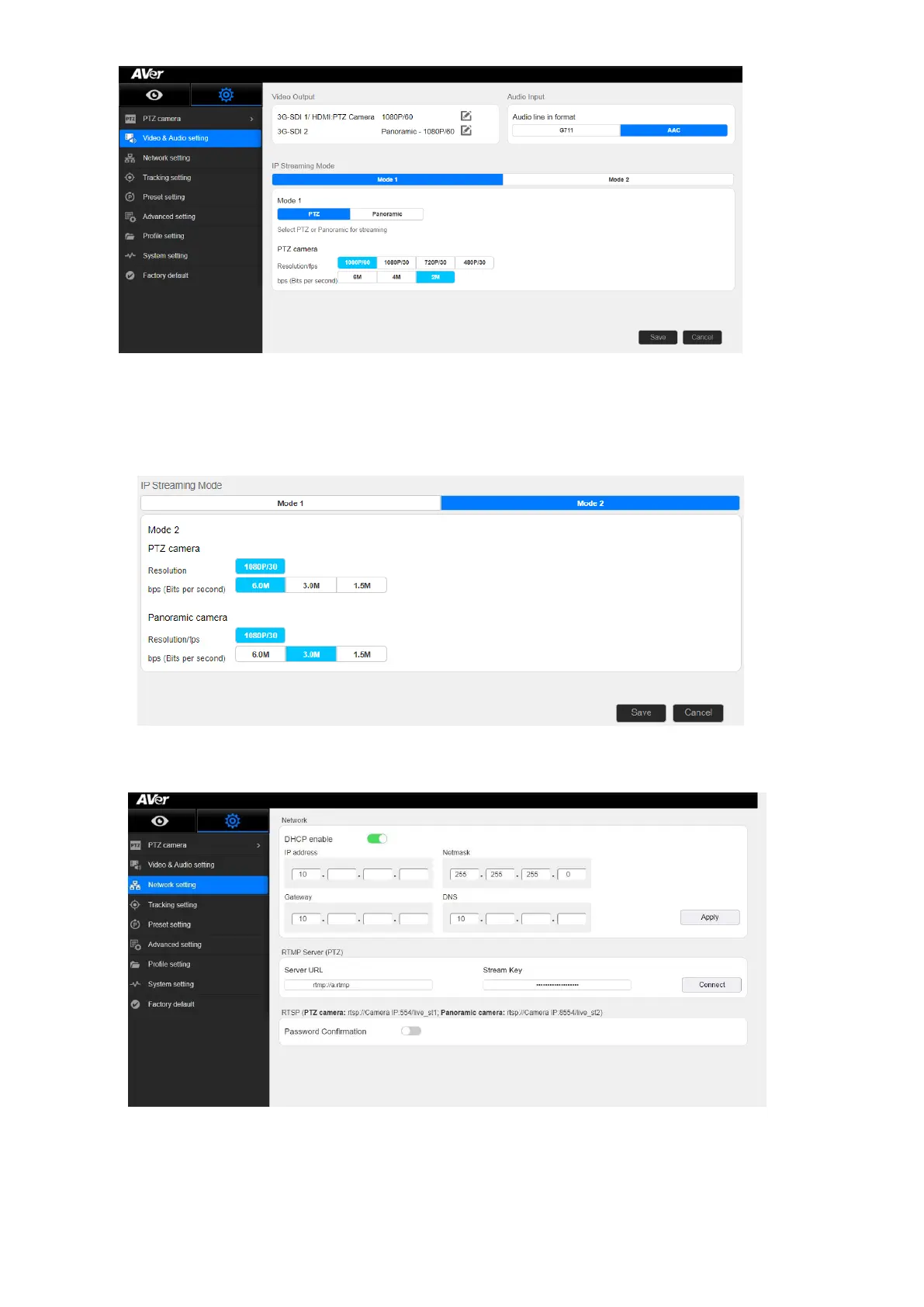 Mode 2: There will be 2 simultaneous streams from PTZ and Panoramic views set to