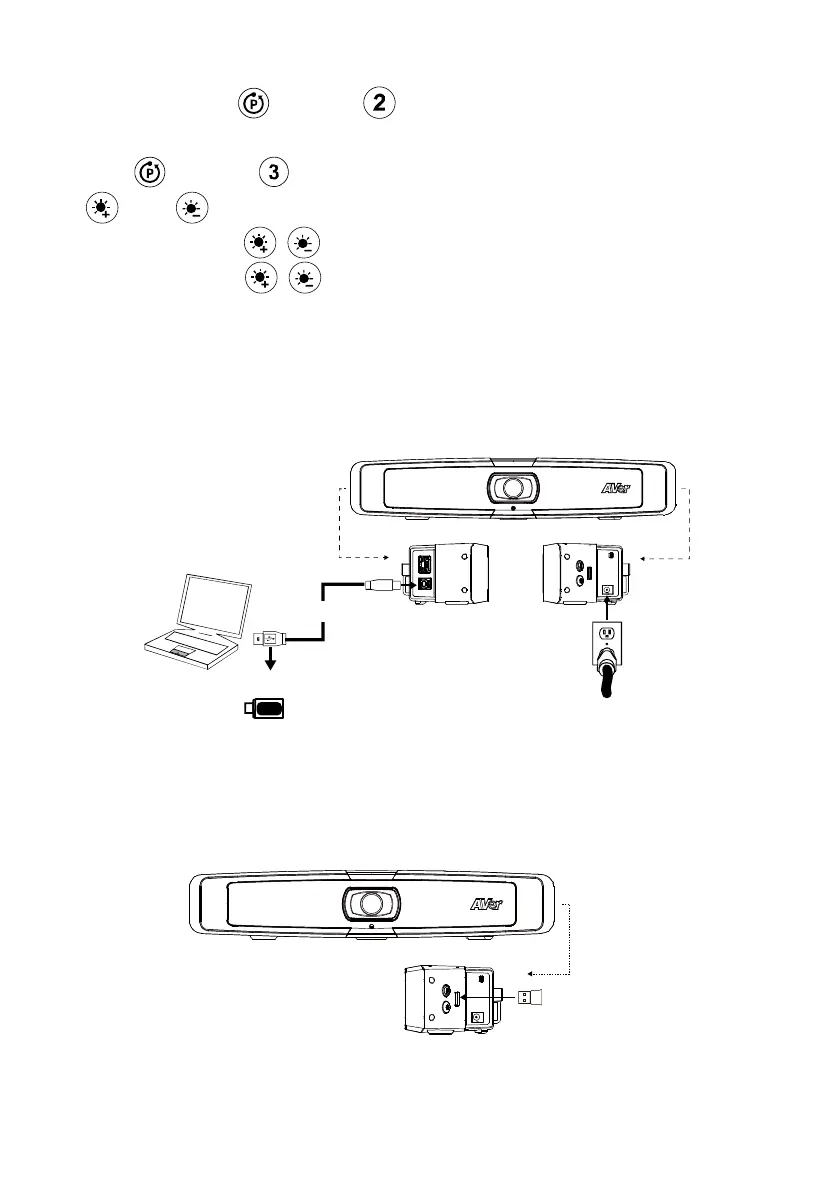 2. ワイヤレスドングルのインストールドングルを USB 2.0 type-A ポートに挿します。リモコンまたは PTZApp 2 を使って、