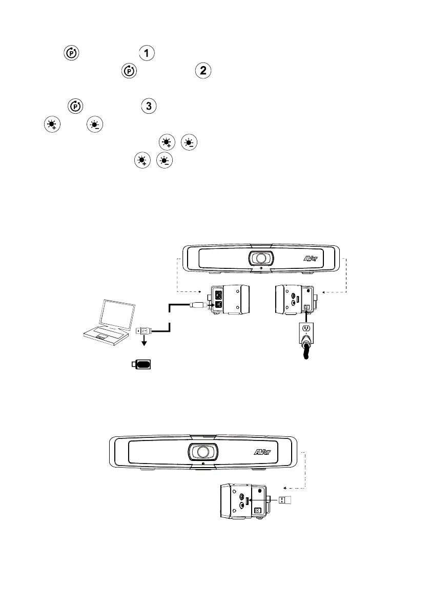 1. 제공된 USB 2.0 케이블을 이용하여 VB130 을 PC/노트북에 연결하고 VB130 에서 벽면 전원