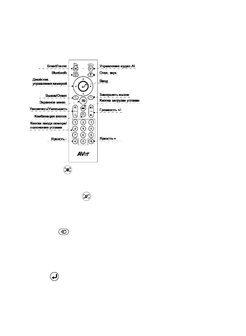 телефоном или громкоговорителем AVer FONE540. Следующее короткое нажатие отключает