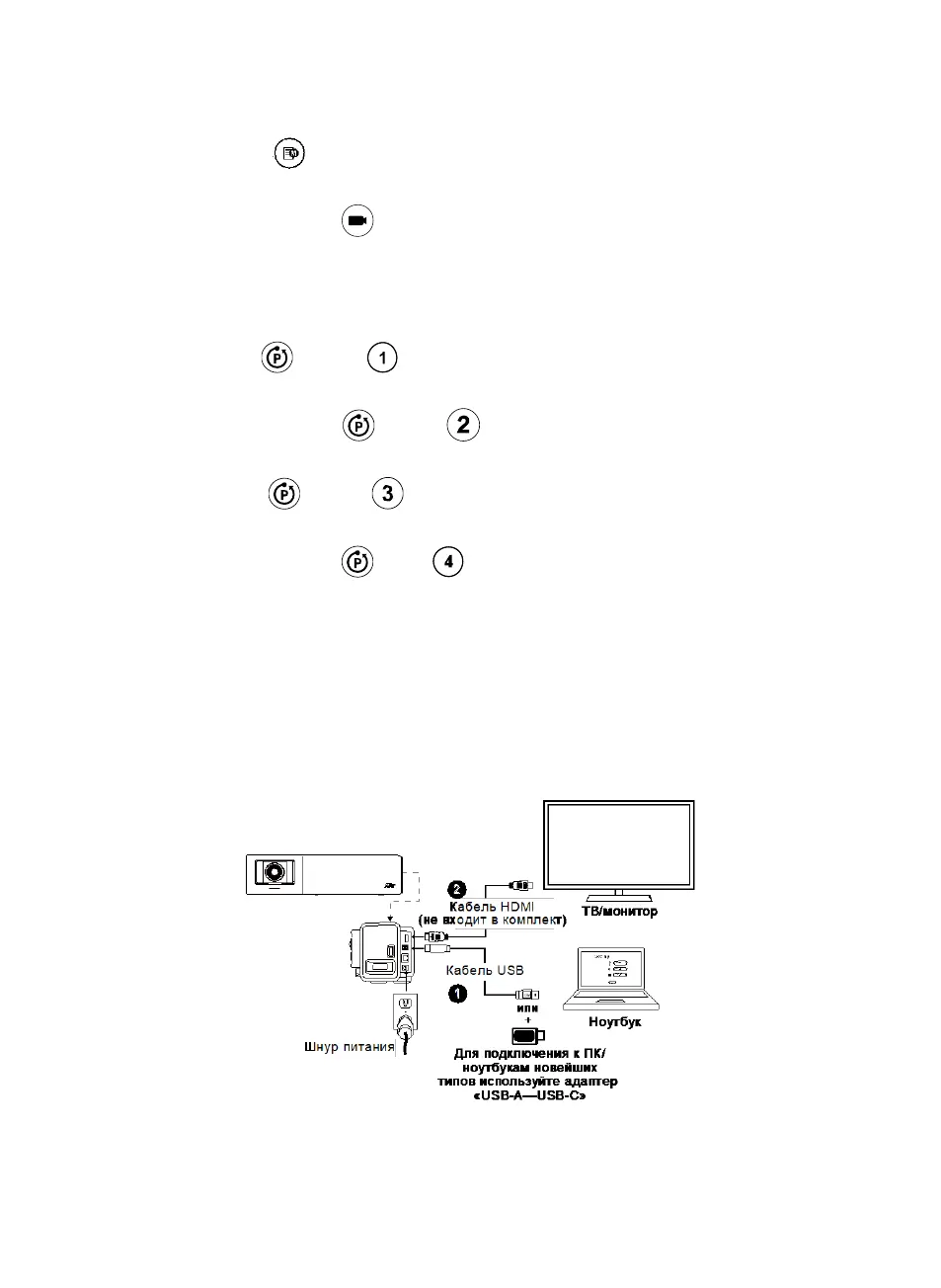 Кнопка загрузки уставки ( ): Каждое нажатие переводит камеру в очередную позицию