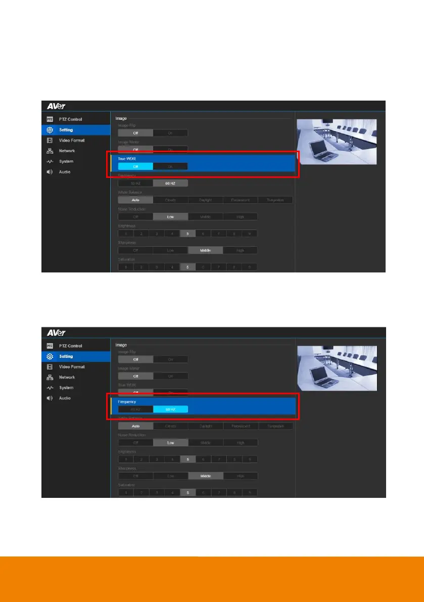 Select Setting > Image > True WDR > Off or On.