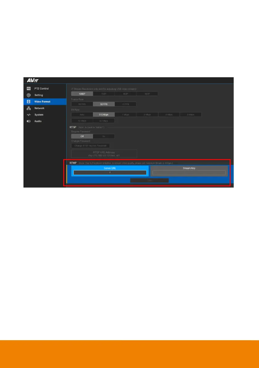 1. Locate the RTMP server URL and stream key from the broadcasting platform and enter in Server
