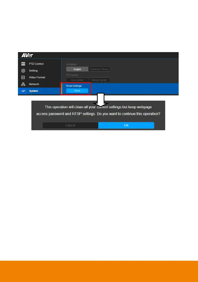 [Note] When factory default is activated, the password of Webpage login and RTSP will not be set to