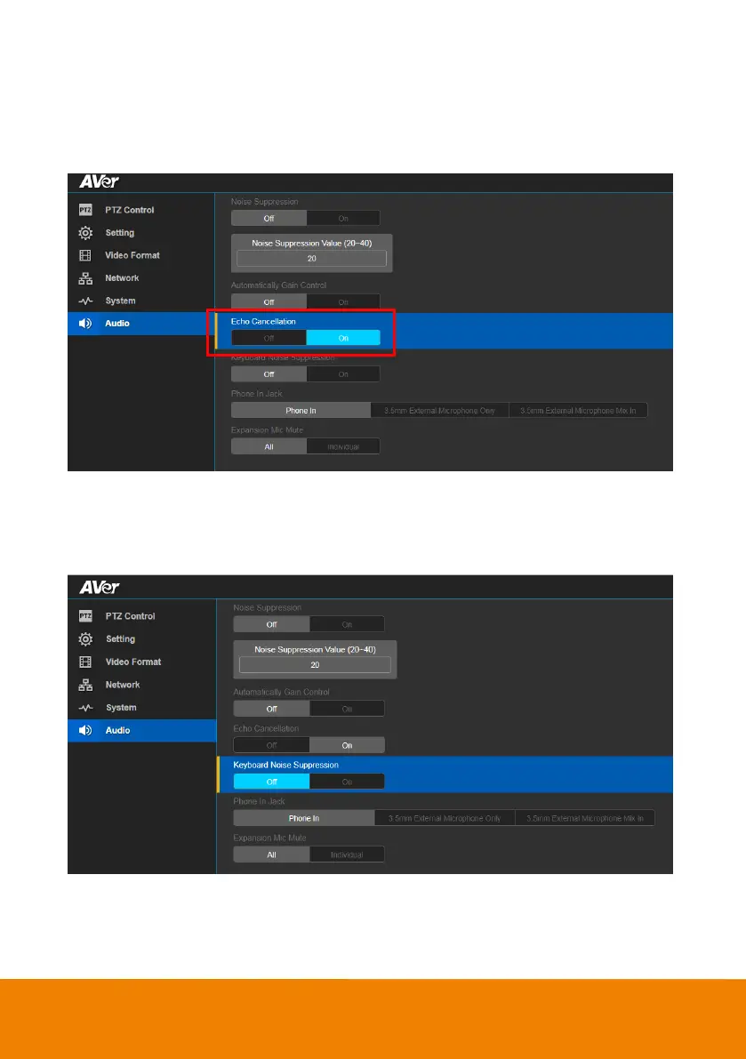 In live screen view, select Audio > Echo Cancellation > Off or On.