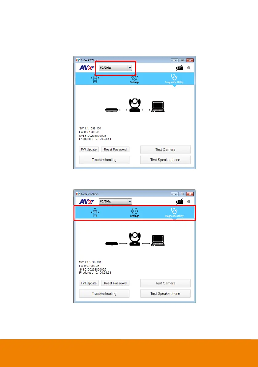 PC/Mac PTZApp is running, you can click on the drop-down list to select other AVer VC, VB or