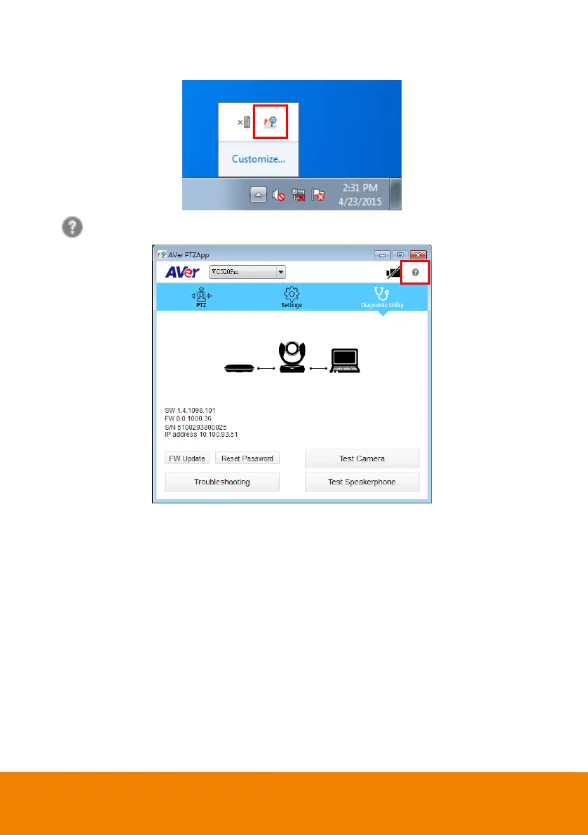 : Click icon will launch the browser and connect to the AVer PTZApp web page.