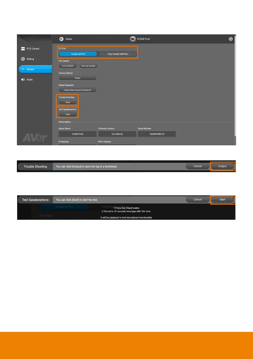 Trouble Shooting: Click Start and Output to output log to save in local PC.