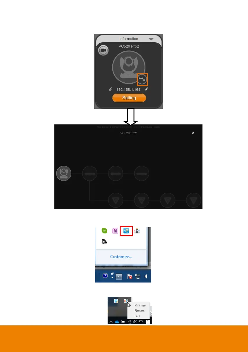11. PTZApp 2 Minimize: Minimize the app to system tray. To quit the application, right-click the icon